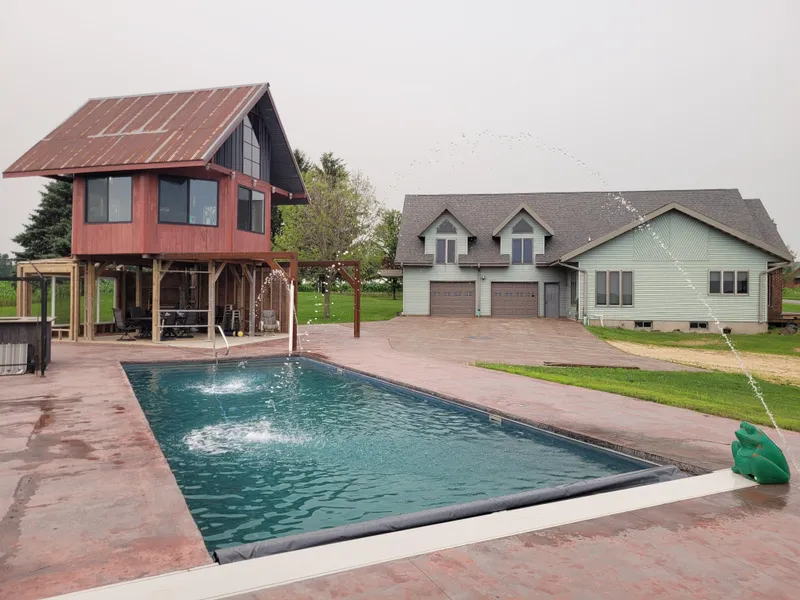 As you leave the pool, you are greeted with beautiful stamped concrete which takes you to this ...