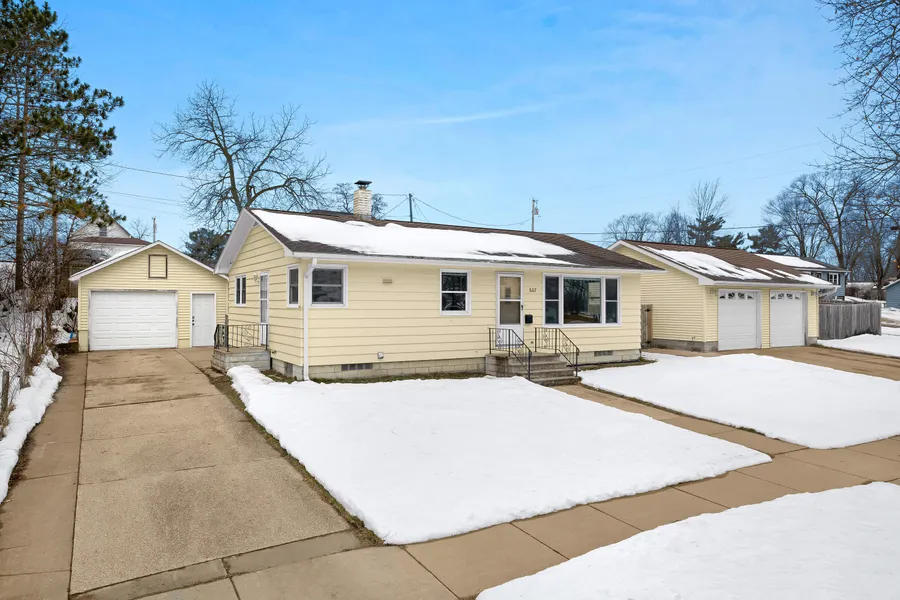 Low maintenance ranch home with a large, fenced yard. 1 car detached garage (16x23') plus a 2-car heated detached garage or shop (26x26'). Great space for extra vehicles, toys and the hobbyist! 3 bedrooms on the main floor with ample closet space, 1 full bathroom. Large living room, dinette area and kitchen all open concept. Large vinyl replacement windows bring in lots of natural light, bright and sunny home! Basement is open, dry, high ceiling and a great place to finish off for more living space. This is an excellent starter home or a great home to downsize into. Walking distance to parks.