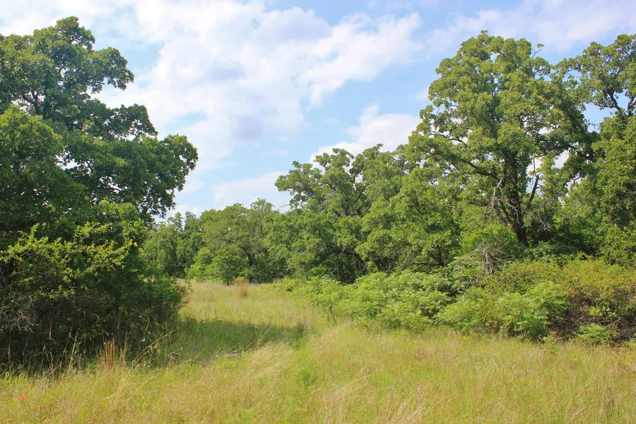 The ranch has roughly 85% solid post oaks, with the other 15% in grass meadows. These meadows have a variety of native grasses, including buffalo, bluestem, and chama. It has perimeter fencing and current ag exemption on it, so the property could be used to run some cows. With all of these trees, you can get lost in these woods exploring all the different nooks and crannies of the ranch!