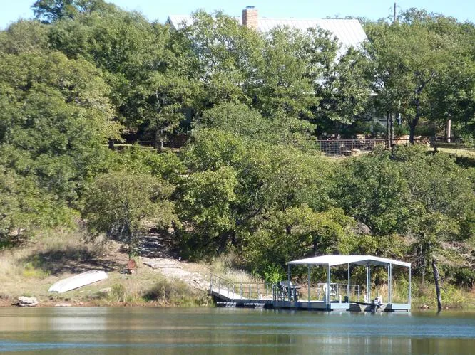 Hill Country Hideaway on 176 rolling and wooded acres. 1830's hand-hewn timber frame barn home overlooking tranquility of your own 10-12 acre spring-fed bass/jet-ski lake with boathouse. Timber frame barn from Middleton, NY was disassembled, numbered, transported and re-erected in an old-fashioned 'Texas Barn Raising' by Heritage Barn Builders in 2000. The style reflects a rustic yet modern resort-like feel, with luxuries such as all Viking appliances(6-burner gas stove with double ovens) and extreme energy efficiencies. Separate guest house and workshop, also with quarters. Come enjoy your love of the great outdoors in the company of deer, turkey, ducks and geese, as you commune with nature in your own private country haven.