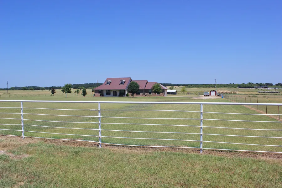 The home is surrounded by 57 +/- acres of lush coastal bermuda pasture. Along the road it has a white pipe fence, and the rest of the perimeter has a five line barbed wire fence. The owner has used the pasture to grow hay and graze horses. One pond is located in the back pasture. If you wanted to dig a water well, it shouldn't be an issue with hitting good water, as the neighbor has a well. The pasture is cross-fenced into two pastures, 40 and 8 acres in size. By the house there are four pens fenced off separately, ranging from 1.2 to 2.1 acres in size. Previous survey work has been done on this land too to break it into multiple tracts. This survey will pass to the new owner, so they can subdivide or develop the property further in the future.