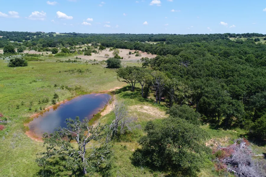 The land on the top of the hill has almost 34 acres and is approximately 45% thick post oaks and cedarsand 55% improved pasture. The oak trees are perfect for bow hunting, and the pasture, for rifle hunting. The pasture has tall, thick grasses and short range brush, including bluestem, some mesquites and re-emerging oaks. The south half of the improved pasture has dotted trees throughout it as well. The property has one small (but deep) pond, which attracts wildlife. There are two other locations that would be good for installing ponds too; the one in the far south corner has two drainages running through it.