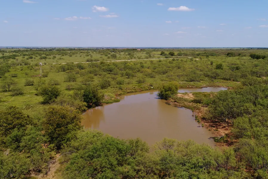 The ranch has one large pond, around one acre in size. Per the owner, it is stocked with bass and catfish and has some large fish in it. One water well, powered by a windmill, is on site and could be piped to areas of the ranch to set up stock tanks for cattle and/or wildlife. The land has one perimeter fence around it; other than a fenced off cattle trap, there are no cross fences. A set of pipe pens is inside the trap.