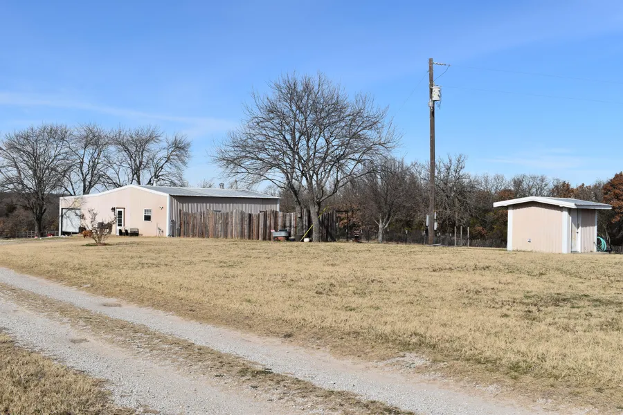 BEATUIFUL VIEW POINTS - This 20.210 acres has stunning sights overlooking nice coastal pastures and a medium stock pond, fenced all the way around with an approx 2000 sq ft barn with living quarters on one end and a 800 sq ft shop-garage on the other. This metal home sits on top of a hill with a fenced off backyard, separate well house with utility room and water filtration system. Small corral with covered area for livestock and a chicken scoop. Garden area is fenced off and fruit trees have been planted along the front of the property. The pastures yield 30-40 round bales per cutting of super good hay. This is a perfect location between Montague and Forestburg... MUST SEE THIS ONE