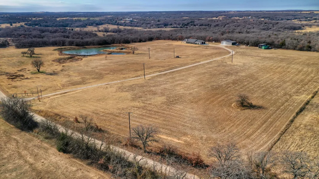 Meticulously built and excellently maintained custom barndominium situated on just under 30 acres. This stunning home showcases an open floor concept. The kitchen displays white custom built cabinets, granite countertops, and stainless steel appliances. Large island bar with butcher block counter top perfect for extra cabinet space and seating. Family room incorporates full masonry with insert fireplace and amazing views of the almost 2 acre pond. Home has 1400 square foot of covered patio great for outside entertaining. Included with this property is a 30x40 spray foamed shop with water and electricity, 20x40 lean for equipment storage, and a 14x39 covered rv parking storage. No detail overlooked!