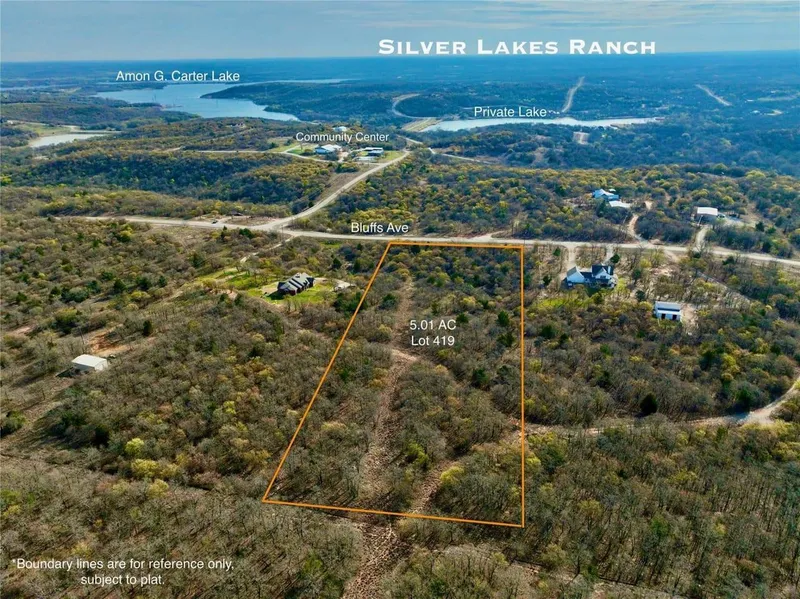 Welcome to the well established private community of Silver Lakes Ranch with an available 5 acre lot ready for your new home. The desirable area offers the scenery, wildlife, and space that checks all the boxes for many in search of a weekend getaway or even full-time residence. With 2,300 acres of varied terrain and a pleasant mixture of trees with open spaces for all the views, Silver Lake Ranch next to Amon G. Carter lake also offers many amenities which make it so attractive. A community swimming pool, gym, and even boat or RV storage is located in the private community. For all the fisherman, there is not just 1 but 2 lakes with boat ramps here to choose where you'd like to wet a line. It's location is 15 minutes from the town of Bowie with grocery stores, a Walmart, and places to eat. It is also an hour and 20 minute drive from the DFW airport with easy access to HWY 287.
