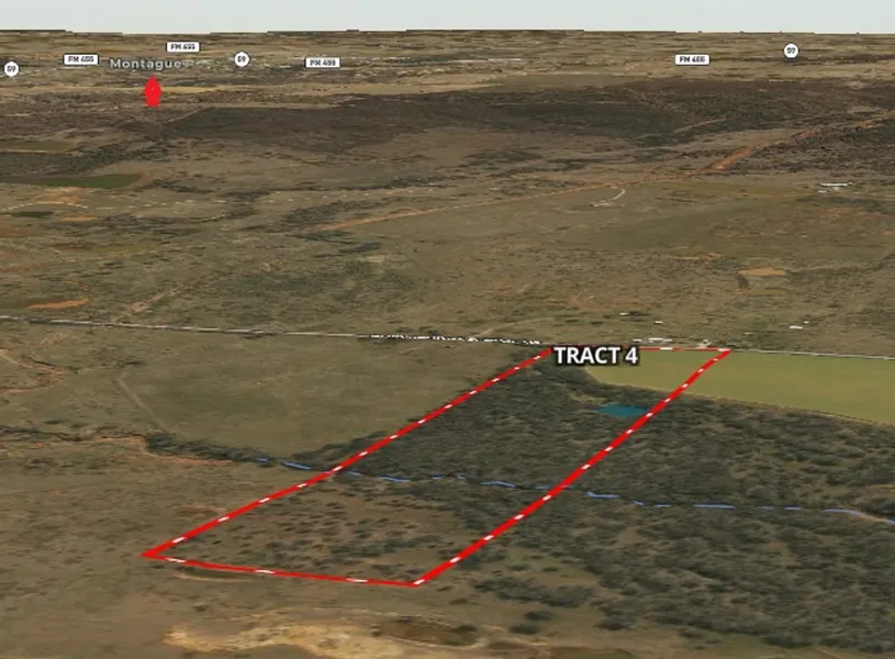 Johnny's 80 - TRACT 4 - Sitting between Montague TX and Nocona TX, sits Johnny's 80, part of the Bybee Family Properties. The approx. 80 acres is being divided into 4 tracts each with great access, building locations, great hardwoods, and a seasonal creek. Great place to build your new home with ample space to have horses or a few cows, and do a bit of hunting! Approximately 20 acres with frontage on Rock Springs School Rd. Mostly level with close to a 10 ft elevation drop in the area of the seasonal creek on the northern end of the property. TRACT 4 has with approx 3 acres of cleared land and approx 17 acres of heavily treed land.