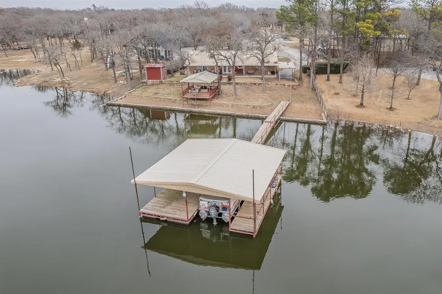 Rare find! This beautiful, well cared for property is located on a desirable part of Amon Carter Lake, known to be a well-stocked fishing lake. Located just a block from the Top of Lake Golf Course, this property a golfer's dream. This home offers the luxury of a floating dock to fish or relax and a second covered dock with a boat slip (Pontoon boat is negotiable with the house). Energy efficient with solar panels and a fireplace insert that creates sufficient heat for the entire home, makes your electric bill significantly reduced. This home also comes with central heat and air to ensure continuous comfort, as well. There is a covered back porch extending the length of the house near the water for entertainment and unwinding. The 30 X 30 detached garage is equipped with oversized doors and electric openers for both. Montague County offers a variety of yearly traditional events, historic...