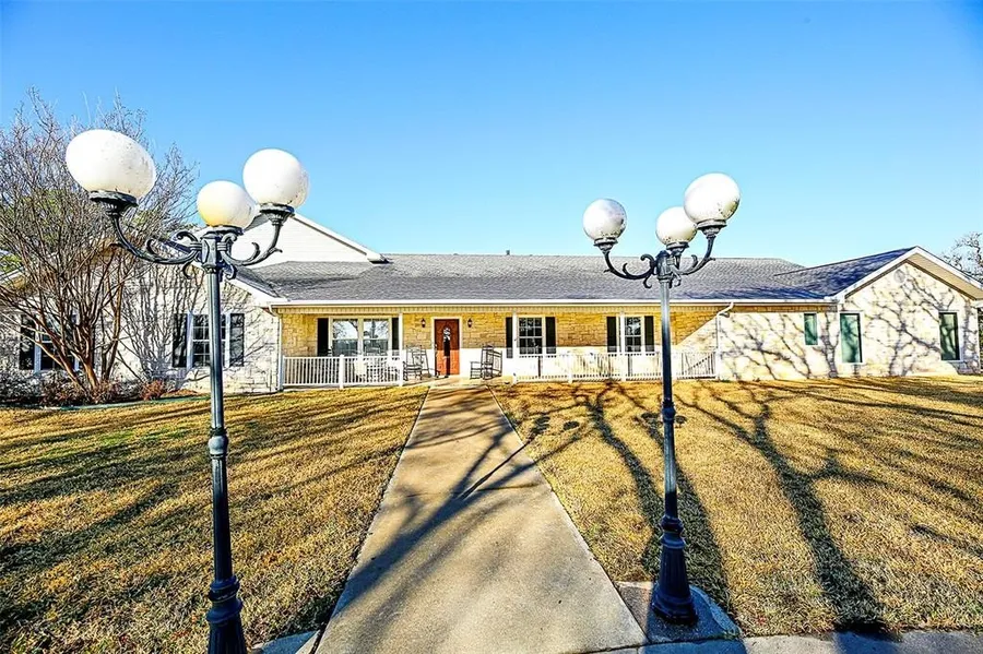 NEW ROOF JUNE 2025 Texas Sunsets are best when viewed from this stunning 10 acre luxury retreat including pool, pool house that serves also as additional living quarters including full bathroom and kitchenette, tennis court that has new pickle ball and basketball court conversion including outdoor lights and over 2400 sq ft shop! Beautiful gated modern home nestled among mature oak trees and concrete circle drive way. This home had over 2000 sq ft added on including stunning primary bedroom suite, grand office with custom bookshelves that could also be used as bedroom with jack and jill bathroom and custom Elfa closets are what dreams are made of!!! This home features two primary ensuites, large laundry room with storage galore and additional washer and dryer connections in new addition. Oversized upstairs game room with new flooring allow for additional storage, play and a stunning view of your Texas pristine paradise! Over 1000 sq ft concrete slab behind the pool that was set up for batting cage. Sellers added spray foam insulation in the home and shop for energy efficiency in 2024.