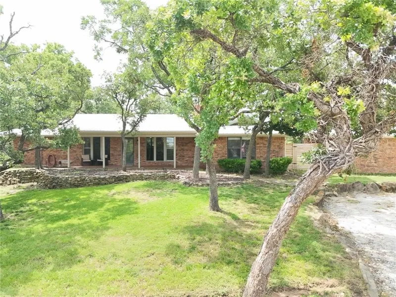 Experience lakeside living in the private, 24-hour guarded community of Nocona Hills. This single-story brick home offers an open floor plan with two living areas, two dining spaces, and a wood-burning fireplace. The kitchen features granite countertops, stainless appliances, electric cooktop, and breakfast bar. Enjoy sunrise and sunset views from the covered patio overlooking the lake and tree-lined hills. The property includes solid pine interior doors, metal roof, and circle drive. Community amenities feature an 18-hole golf course, private fishing lake, boat ramp to Lake Nocona, RV park, and 3,000-foot grass airstrip. Upcoming clubhouse renovation planned for 2026. Annual HOA provides maintained roads, utilities, and manned security gate. Peaceful, scenic location just 6 miles from downtown Nocona shops and dining—ideal for full-time living or weekend retreat.