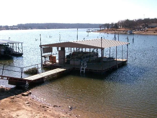 Wonderful waterfront lot on Amon Carter Lake close to the golf course with a 3 bedroom, 3 bath, brick home with an open floor plan, fireplace, tile countertops, tile & laminate flooring, metal roof, covered back porch, waterwell, sprinkler system, 30 X 30 shop building and covered setting dock overlooking the lake. There is also a wonderful 30 X 30 covered boat dock with a boat lift.