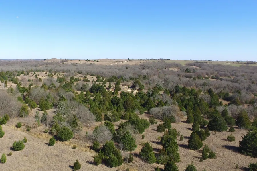 This property feels so much bigger than it is! It located in the rolling, tree-covered hills between Forestburg and Montague, less than two miles from the paved FM 455. It has approximately 100 of elevation change across it and is covered in oak trees, with some areas having heavy concentrations of juniper cedars and elm too. You will find both post oak and blackjack oak trees here. Multiple ravines transverse the property...