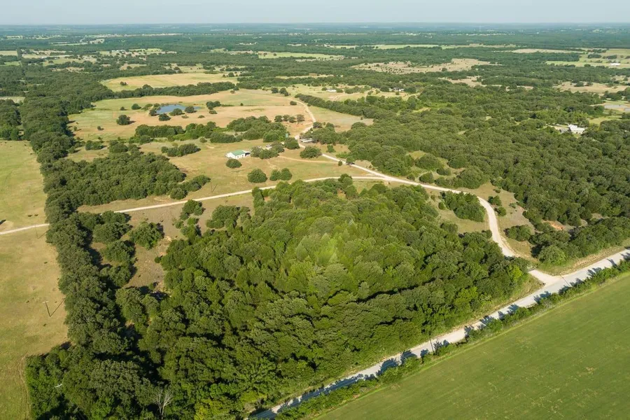 The ranch is about half wooded with being primarily oaks with several natural cleared areas. There is also 60 acres of cultivation that could be planted in winter wheat to attract wildlife and/or to graze livestock. There are two separate cultivated fields, both being cross fenced from one another. The terrain is rolling to level with the highest elevated point being where the house is located. There is over 80 feet of elevation change across the land. The southeast portion of the property is dominated by Couch Branch Creek. There is an additional seasonal creek across the northwest portion of the property. Surface water consist of 3 stock ponds.