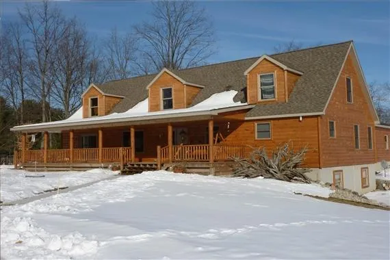 This property is located in northern Montcalm County approximately 2 miles southeast of Amble. This new 2,500 sq. ft. half log home is loaded with high end amenities. It features an open floor plan with cathedral ceilings and knotty pine interior. 3 bedrooms, 3 bath (one with Jacuzzi tub) make this a very comfortable living space. A 30x50 3 stall attached garage, full basement, Geo-Thermal heat, pellet/corn fireplace and 10x50 covered porch are just some of the features that make this home so inviting. The land is nicely wooded and is home to deer, turkey and numerous other species of wildlife. If you are looking for a beautiful home in a country setting this property should be considered.