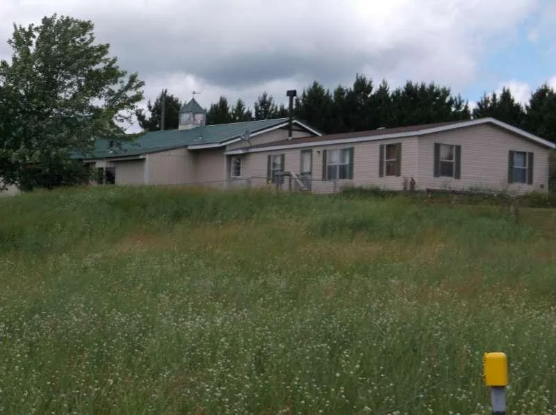 1991 manufactured home setting on 5 acres M/L with fenced backyard. 2 large pole barns attached to house for you to get to in any weather. First pole barn has a finished office with own furnace. Home has a new master bath installed in 2012. Home has geothermal heat.