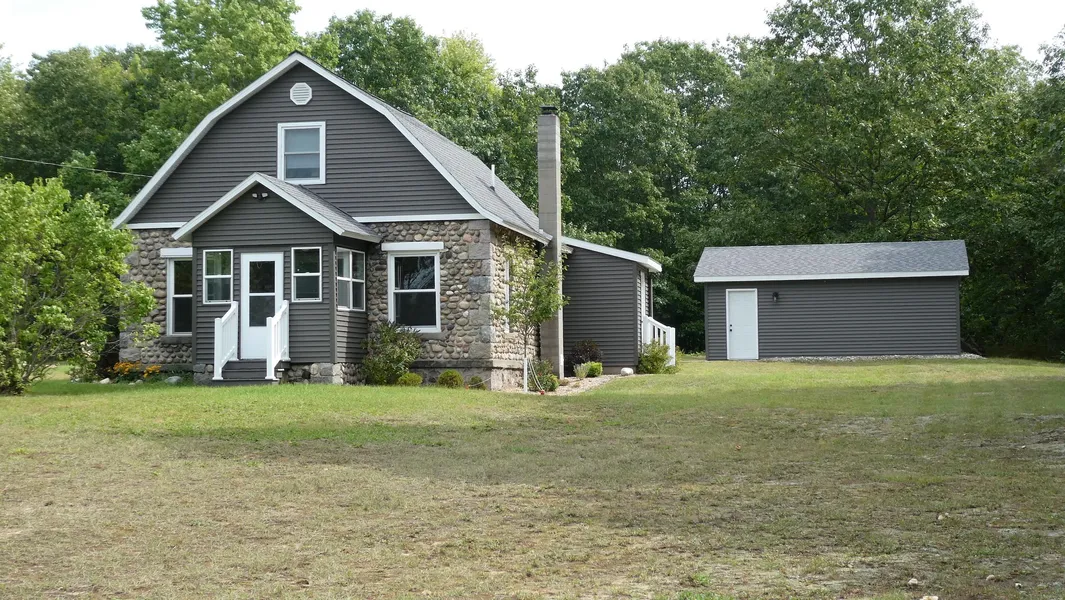 When you hear the word unique, the phrase ..one of a kind, these words and phrases get overused and lose their luster a bit when they don't really apply.That is not the case with this beautiful, completely renewed cabin and the 75+/- acres that it sits on. It is VERY unique and I have been in hundreds of cabins in Michigan none were close to this one. The only thing remaining for the most part from the original cabin is the stone that comprises the exterior. Everything else was stripped out to the studs and impeccably redone. New furnace, new hot water heater, new plumbing, new well pump, new appliances, new water purification system, you name it and it is probably new. The photos here tell the story; honestly, it is better in person. The two-car garage was added last year and has an extended cement floor. This is the top shelf of deer camps. You will want to click on the trail camera ta...