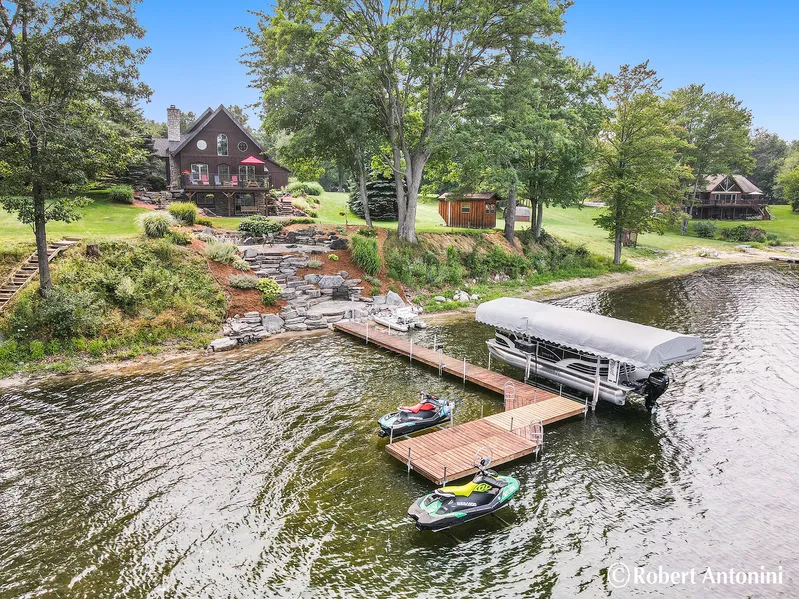 Paradise begins here on the 180 Acre All Sports Rainbow Lake! 35 minutes from Grand Rapids for a spectacular getaway w/ deluxe Timber Frame Construction. 10-acre common area/nature preserve across the street with no buildings allowed for ultimate privacy. Underground utilities w/high speed internet. The beach is approx. 107 ft with a sandy bottom. A 2 and 1/2 stall garage w/ new roof for storing all the fun water toys, summer/winter. From 2016: Well, driveway, second furnace, hot water heater, upgraded electric panel, new roof on home and garage, real copper fascia, custom deck and railing, egress window for lower bedroom, main floor bathroom remodel with added shower, master suite with 1/2 bath and new slate stone on outside basement walls. Approximately $100 thousand dollars in upgrades inupgrades in the last 5 years. The home features 3 bedrooms, 2.5 baths, Great Room, Den, Loft, Recr...
