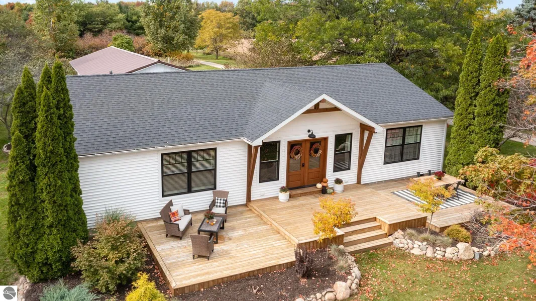 Here is your chance to own a piece of quiet country living! This completely remodeled home on 8+ acres checks all the boxes and then some. Looking for acreage for a small hobby farm? Check. Outbuildings, hunting? Check. Newly renovated home with tastefully curated spaces indoors and out, perfectly suited for entertaining family and friends for the holidays and beyond? How about a fully equipped guest house/in-laws suite in the detached garage, just steps behind the back door of the home? Yes, please! This gorgeous 3 bed, 2 bath home has been completely remodeled; New roof, siding, Anderson windows, electrical, plumbing, on-demand hot water heater, furnace, hardwood/slate flooring. A custom gourmet kitchen awaits the avid foodie! Plenty of cabinet and counter space, 36? Commercial style gas range, built-in dishwasher and microwave. Open concept floorplan, with a spacious living-room that opens onto the large multi-level deck. Primary suite on one end of the home, including a tiled shower, marble-topped double vanity, and an adjacent laundry room/walk-in master closet. Detached two car garage houses a fully finished apartment space that could be used as an in-law suite or quarters for guests! Complete with a bedroom, loft area, kitchen, living area, bathroom and hook-up for washer and dryer. Towards the back half of the property sits a 30 x 40 finished pole building, where the current owner has been operating a dog kennel for the past 5 years. Barn has a fully finished office/living space with a kitchenette and half bath. Barn is well insulated and heated with its own propane furnace. Seller will need to lease back the kennel barn/fenced-in play area for a minimum of 6 months from the time of sale in order to have time to relocate the kennel. There are all kinds of possibilities with this home and property; limitless opportunity awaits the visionary! Seller is a licensed real estate agent in the state of Michigan.