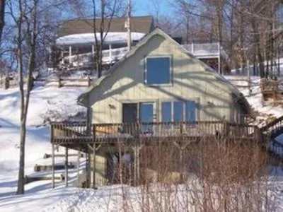 Waterfront and unique explains this home! Built on the bank for a super view of all sports Townline Lake. This home has a big list of updates that have been done in the recent past-newer roof, furnace, water heater, stainless steel fridge, stove, and dishwasher. Harwood laminate flooring in kitchen and eating area. This property comes with 5 lots, so you have room to build a garage and drive. DNR designated wetlands in front of home.