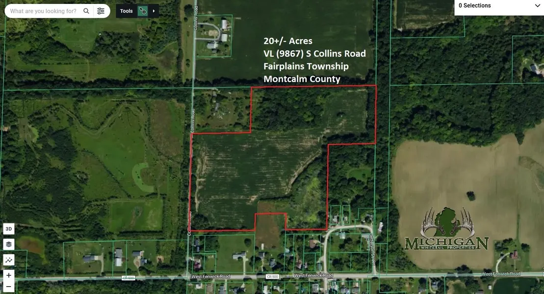Located in southern Montcalm County, adjacent to the Village of Fenwick, sits this 20 acre tillable & recreational parcel with plenty of great possible build sites. The property consists of approximately 13 acres of tillable ground, 5 acres of woods, and a couple acres of low ground. The northeast portion of the property is adjacent to the old RR row that connects to a large section of woods to the East for wildlife cover. The property has large parcels surrounding it on the East, North, and West and the Village of Fenwick resides just to the South. With the agricultural fields both on the property and nearby, there is plenty foo...