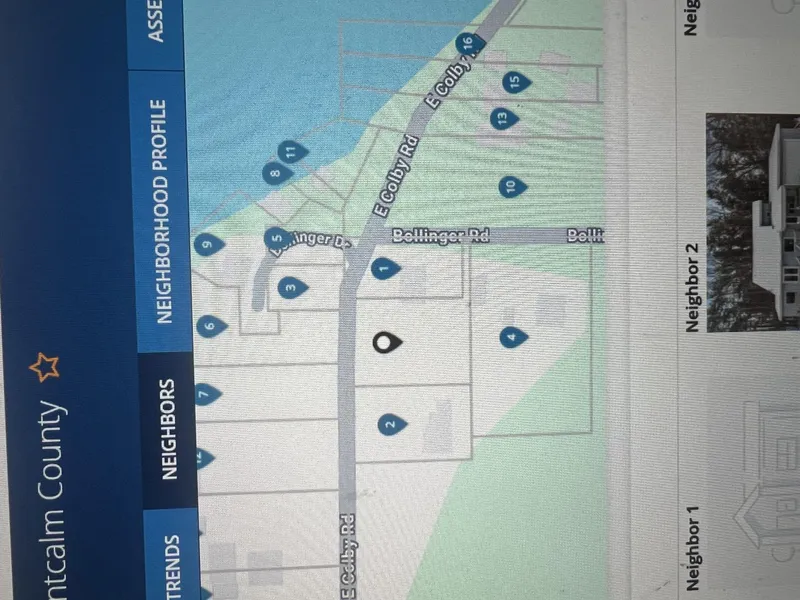 Nice view of Duck Lake !! Vaccant Lot with Power, Well, Sewer in place!! Lot has access to 2 roads. Colby road and Bollinger road. Shed on property.