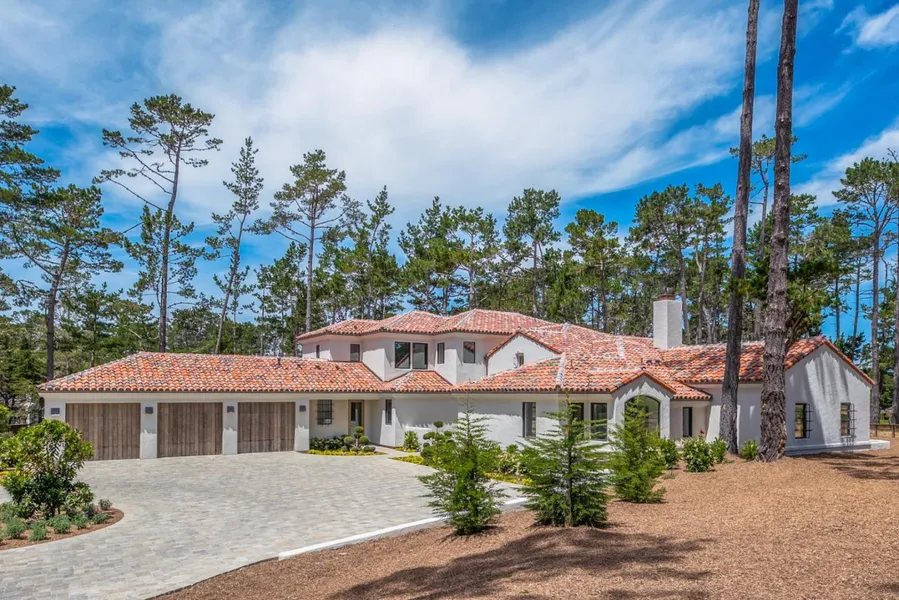 This beautiful, newly constructed, modernized Monterey Colonial-style residence has been masterfully designed and exquisitely executed using resourced materials and fixtures from the Murray House, an iconic Pebble Beach estate, embodying a connection with Pebble Beach's architectural past. The dramatic high beam ceiling living room with Chilton stone fireplace and classic rose glass window showcases golf course views of Poppy Hill's 13th fairway. The home features fossilized limestone floors with radiant heat throughout, handmade cedar doors and Taj Mahal Quartzite countertops. The gourmet kitchen with Chilton stone highlights and comfortable family room are ideal for entertaining. The spacious master suite and luxurious bath enjoy treetop golf course views, with a total of 4 bedrooms and 4.5 baths. The home opens to a patio with firepit and seating for enjoying the outdoors and golf course ambiance. The home is located with easy access to fine dining and the amenities of Pebble Beach.
