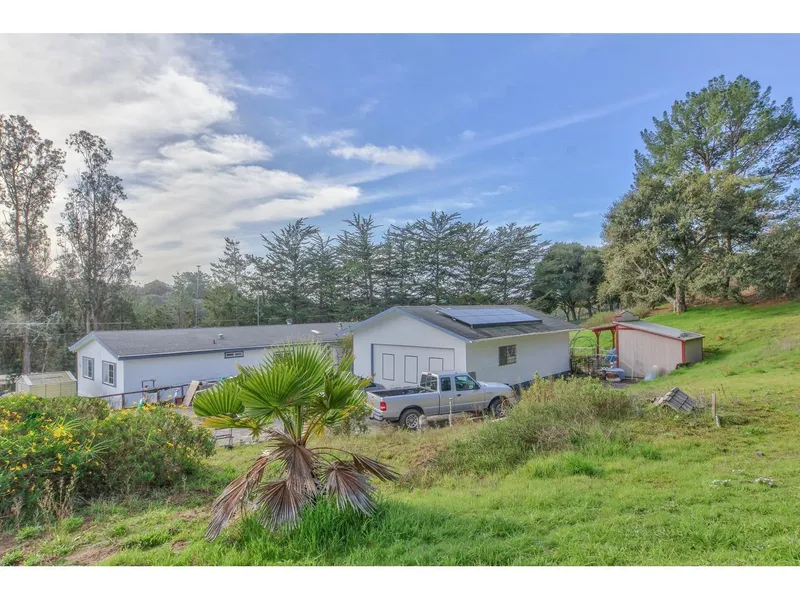 Just over 2.5 acres of flat usable acreage with a 3/2 manufactured home located on a private country road! The spacious manufactured home offers high ceilings, separate dining area, inside laundry room, a large living room complete w/ wood burning fireplace and separate bedroom "wings" with the master suite on one end & two additional bedrooms at the other. While the home needs some TLC, it provides a great opportunity to the buyer with country dreams! The detached two-car garage has an attached shop / hobby room and there are a two sheds along with a small green house on the property providing lots of storage. You will appreciate how usable the property is with ample room for RV, boat, horse trailer, animals & more. Terrific country property you won't want to miss!