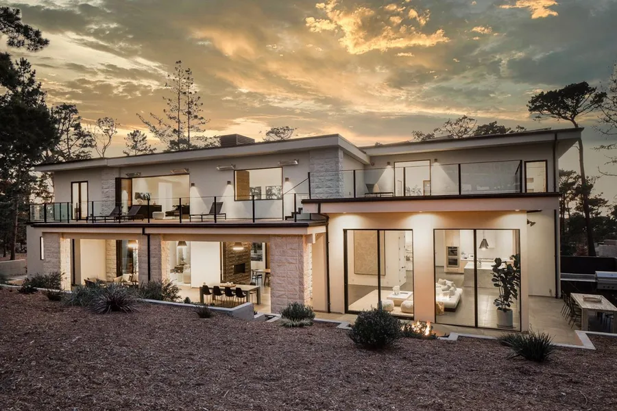 This contemporary masterpiece overlooking the 1st fairway of Poppy Hills Golf Course takes full advantage of its prime location with indoor/outdoor living spaces and walls of glass to pull in the surrounding beauty. The modern design impresses from the moment you walk through the custom metal pivot front door to reveal the sophisticated great room with custom Black Pearl granite 2-story fireplace. Located in the exclusive Poppy Lane neighborhood, the home boasts an extraordinary list of features including a custom 300+ bottle wine storage, Wolf and Subzero appliances, a floating black marble outdoor kitchen, 10 patio heaters, a green vegetated roof, fenced dog run, Nest Smart Home system, built-in Sonos ready speakers, Lutron ready window shades, 3-car finished garage, 9KW solar system, whole house water filtration and air ventilation system, and 5 suites (including a spacious master on ...