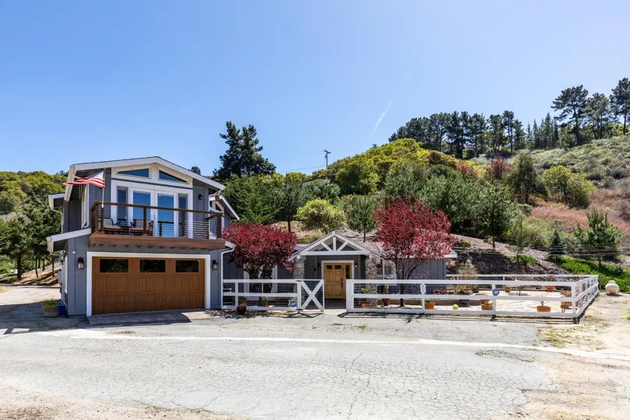 Experience Carmel Valley living at its finest with its 7 plus acre estate just minutes from Carmel, ideal for horse property or just kick back and enjoy the good life. The newly-remodeled two bedroom main home features an open floor plan, chefs kitchen and high ceilings accompanied by a separate two-bedroom guesthouse, an apartment. and a large entertainment room next to the barn, complete with a lit bocce ball court. This amazing property has much more, including a hay barn large enough to store tons of hay. a trailer or just your car collection. a large riding arena with lights and a gazebo overlooking the area perfect for gathering or lessons, also five large paddocks and 20 horse stall. The property has 32 solar panels which support all the property's electrical needs with a back up generator. A large water storage tank with pump to take advantage of the rainy season to supply the la...
