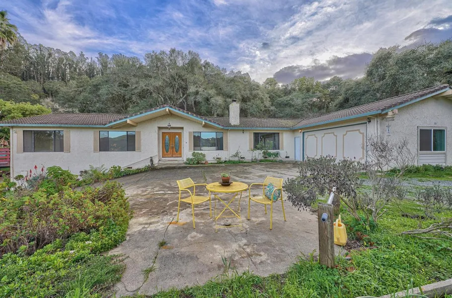 At the end of a private driveway on Aromas Heights Lane sits a 2,506 Sq Ft Ranch-Style home on almost 3 acres w/views you only dream about. Tasteful light fixtures, engineered waterproof laminate & carpet. Kitchen w/Corian countertops, & spacious walk-in pantry. Large bathrooms, (one with sunken, jetted tub & walk-in closet), and bonus room for entertaining your guests or just relaxing, with access to backyard bricked patio. Lots of room in Main Bedroom w/panoramic mountain views, own bathroom, and private balcony. Spacious bedrooms, some w/own private entry. Two cozy pellet stoves! Plenty of storage inside and finished storage area under the house. Horses and livestock okay. Storage Shed, fruit trees, & plenty of parking. Only 5 min to downtown Aromas. Enjoy this country home and escape reality while creating memories. A Must See.