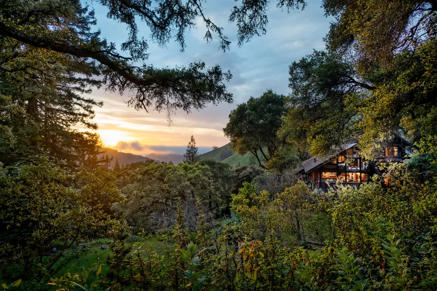 Escape to this majestic, two-story cottage nestled in mythic Big Sur. From two sprawling decks, vistas of the Pacific Ocean, Santa Lucia mountaintops, golden sunsets, and no neighboring homes. Natural light provides a respite from glowing screens. Nestled above the trees, glass walls and skylights allow you to sleep among the trees and under the stars. Well-equipped kitchen with a rustic redwood living-edge countertop. Spacious and level lawn, terraces of native trees, and raised beds allow you to melt into your natural surroundings on four acres of redwoods, oaks, and fruit trees. The property includes a separate caretakers' cottage and accessory dwelling unit. Well-maintained entrance road and nearby fire station. Fine dining and shopping in Carmel and Pebble Beach are a short drive away within the desirable Carmel School District.