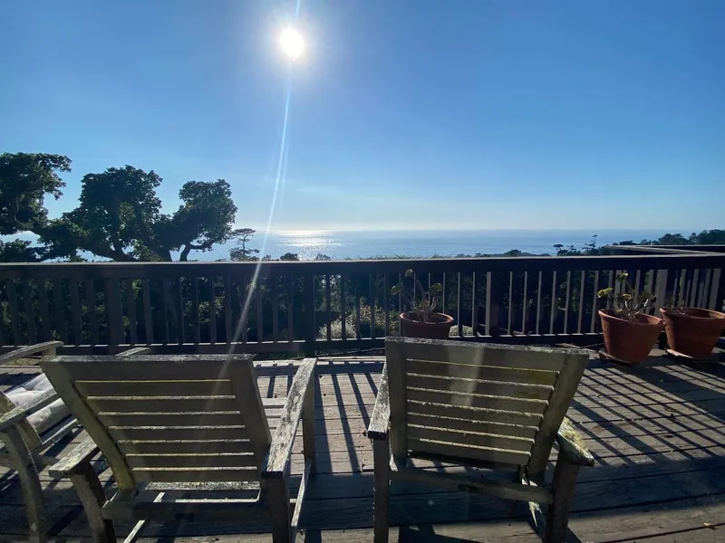 Spectacular ocean views from every room in this very private home on 1.6 acres. Rustic wood interior with modern features evokes feelings of warmth and comfort and presents an auro of timeless beauty. 2 bedrooms plus office/bedroom and 2 full bathrooms in the main house and studio with bathroom behind oversized 2 car garage. Modern kitchen with skylights, granite countertops Miele and SubZero appliances overlooks great room with fireplace, skylights at crest of high vaultred ceilings and the sparkling ocean beyond. Master retreat with fireplace surrounded by walls of built-in bookcases, skylights and slider to private ocean view deck. Master bathroom with high valuted ceiling, skylights, multiple closets, double sinks, oversized tub with ocean views. Separate ocean view unit with private entrance for guests, artist studio, wellness retreat, au pair etc. Oversized 2 car garage with electr...