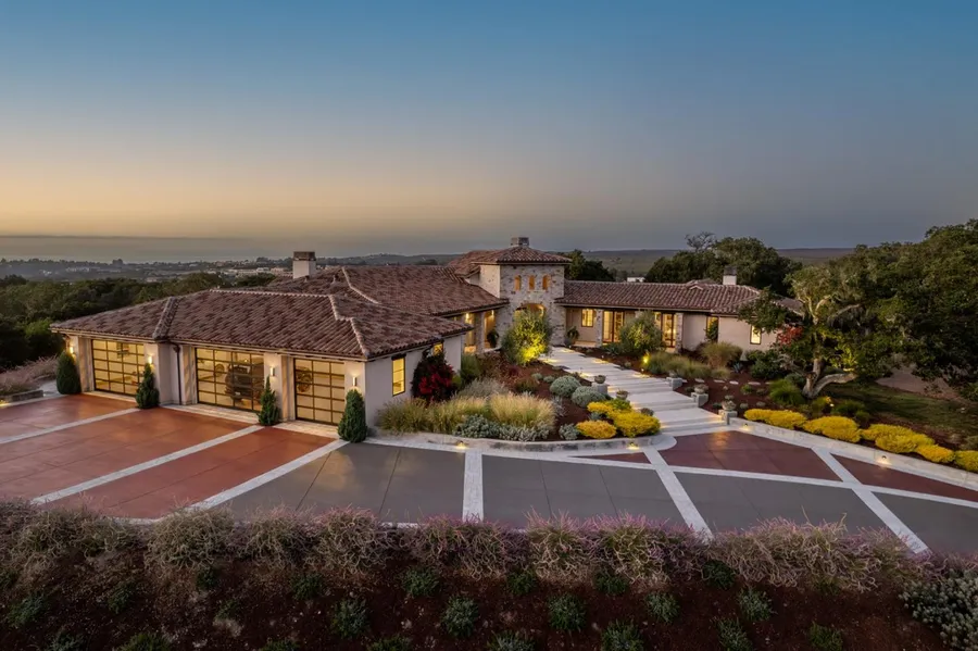 Perched upon the private vistas behind the gates of Monterra, this pristine property offers harmony, balance, and vitality within Mother Natures bountiful offerings. Cradled by the continuous views of the pure Monterey Peninsula, this 2.7 acre haven is enveloped by the ocean, mountains, hills, and ridgelines. The one-story architectural marvel offers over 5300 SqFt of living space, with every detail thoughtfully considered to accentuate the indoor/outdoor living. Highlights include 5 luxurious bedrooms, 3 fireplaces, a majestic water feature, office, gourmet kitchen with new 300-bottle wine refrigerator, expert appliances, and huge marble island, intimate dining room, family room, stunning outdoor patios, full-home radiant heat, huge 5+/- car garage w/ EV charger and brand new custom epoxy floor, and an exclusive Tehama social membership. This rare perfected property is just 10 minutes t...
