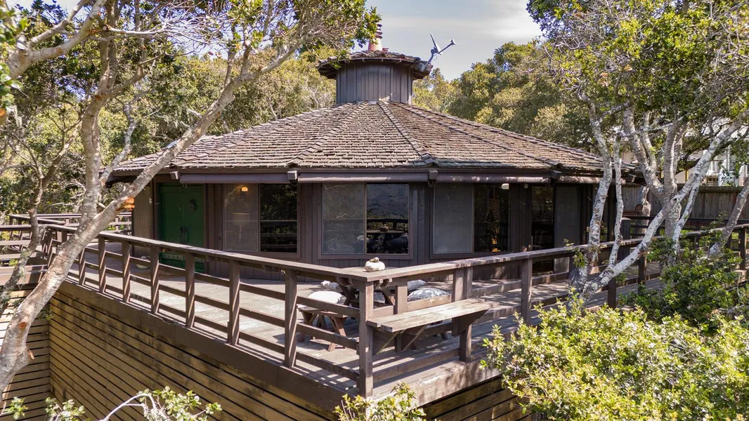 Conveniently located just up the hill from restaurants, shopping, and Folktale Winery, this amazing one-of-a-kind home sits in its own private forest. The ~1,800 sf, 3 bedroom, 2 bathroom house is perched perfectly in the oak canopy and enjoys views across Carmel Valley to the Santa Lucia mountains. Lovingly built in 1973, the 20-sided, circular house has an effortless flow from room to room. The stately stone fireplace provides a warming touch to the primary living areas and the expansive 360-degree deck makes for abundant outdoor living space that takes full advantage of the Carmel Valley sunshine and treetop views. This lovely home exudes character and tranquility and is just a short drive to all the wonderful amenities surrounding the Monterey Peninsula.