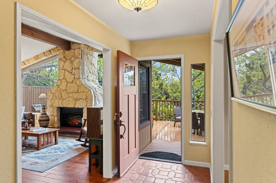 If sitting by the fire in your own private retreat sounds good, then come enjoy this beautiful 3 bedroom, 3 full bathroom home, with updated kitchen and baths. As you enter the gate onto the private spacious front deck, you will be captivated by nature, from blooming plants, flourishing trees in the seasonal creek and the view of the mountains in Garland Park. The home has two ensuite bedrooms, one upstairs and one on the main floor. The vaulted old growth redwood paneled living room features a Carmel Stone fireplace, perfect for cozy gatherings. The kitchen features custom wood cabinets, quartz countertops and newer appliances. With the dining room, family room and kitchen all connected you will have plenty of room for your larger gatherings. It has great internet connection, perfect for someone to work from home. The exterior features beautiful gardens, a new roof and a brand new aspha...