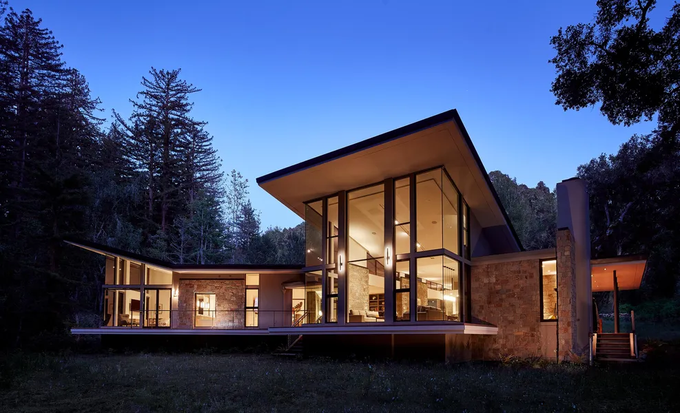 Ideally located within the enchanting 20,000-acre Santa Lucia Preserve lies an award-winning sanctuary and testament to modern luxury harmoniously blended with the timeless beauty of nature. Surrounded by a stately grove of majestic redwoods, this Dan Fletcher architectural masterpiece beckons with its innovative design and seamless integration with the surrounding forest. Step inside to discover a light-filled oasis where soaring walls of glass bring the outdoors in, allowing the majestic trees to become an integral part of the living experience. Clean lines formed by the steel frame and natural elements designed by Jorie Clark create an atmosphere of serenity. The primary bedroom suite with spa-like bath offers a sanctuary within a sanctuary, and the Zen-like loggia provides the perfect setting for relaxation or entertaining as you take in the soothing sounds of a seasonal brook that creates a sense of quietude and connection with nature. This one-of-a-kind retreat in the redwoods is located just a few minutes from the Ranch Club pool and fitness center, tennis and pickleball courts and exquisite cuisine at the Hacienda and top-rated Preserve Golf Club. Luxury meets nature in perfect harmony, providing a haven of peace and beauty in the heart of Santa Lucia's majestic forest.