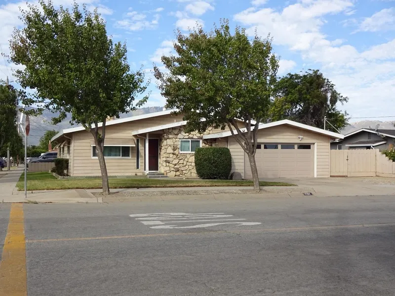 Home on corner lot, very well maintained. Shows well. New appliances, dishwasher, garbage disposal, refrigerator, stove, blinds, curtains , lighting fixtures, 5 ceiling fans, family room sliding door, kitchen flooring, family room flooring and both bathrooms flooring. Beautiful wood kitchen cabinets. New quartz kitchen counter tops. Hardwood floors in living room, hall and bedrooms are the original floors. A large cozy rock fireplace in the living room. RV parking and patio.