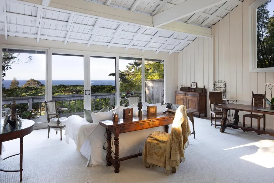 Compelling ocean views unfold in this unique, magical Carmel Highlands home in an exceptional coastal enclave. A tapestry of tree, sea, stone, and star, here a select curve of coastline offers an artistic mix: modern and vintage homes dotted among gems by internationally-acclaimed architects from Charles Sumner Greene to Wallace Cunningham. On a private, rare 1-acre on the west side of that ribbon of roadway threading the Big Sur coast, this is one of few located on the ocean side, in an exclusive handful of properties wrapped within iconic Spindrift road. Strategically sited on its elevated acre, the interior is bright and airy. Soaring ceilings and windows frame unobstructed ocean views visible from every room. Awake to intimate views of the headlands of Point Lobos; granite glows in rising sun, enhanced by the sapphire sea. Whitewater unfurls over satellite rocks off the mainland. Private but not isolated, 2 minutes to Pacific's Edge dining at Highlands Inn, 5 miles to Carmel, enjoy proximity to cultural events there and adjacent Pebble Beach. Carmel Highlands has long attracted some of the world's great creatives, tech types, and Hollywood A-listers seeking sublime spirit of place. Here's your opportunity to join this distinctive enclave, where nature and nurture entwine.
