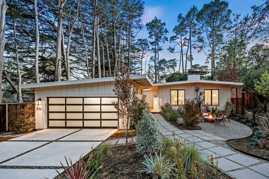 This cool, sophisticated single-story home perfectly blends modern luxury, eco-friendly upgrades, and smart tech. Immaculate, fully remodeled in 2024 and not lived in since, this home was stripped to the studs, rebuilt with high-quality materials and desirable modern palate and may be one of the prettiest homes on the Peninsula. Inside bathed in natural light are smooth plaster walls, soaring ceilings, skylights, gorgeous engineered hardwood floors, gas log fireplace, contemporary custom lighting and brand-new Hunter Douglas window coverings throughout that add style, elegance and privacy. The gourmet kitchen features Thermador stainless steel appliances and breakfast bar, and custom wood vanities which are also featured in the laundry and baths. Each bedroom has a slider that provides easy access to its own private deck and the fenced yard features draught-tolerant, pollinator-friendly plants and offers a secure space to relax and entertain with large deck and an inviting fire pit area surrounded by alluring landscaping. The home is EV-ready, with a detached 2-car garage and smart home features for convenience and security. Move-in ready and located 7 minutes from Pebble Beach golf links, beaches and the Pacific Ocean, with easy access to hospital, shopping, dining and schools.