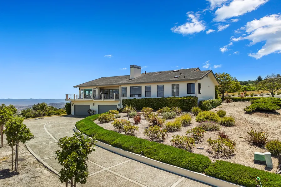 Bay Views, ADU, 8-Car Garage & More Set on a private 1.91-acre knoll with expansive views of the bay and the rolling hills along the Highway 68 corridor, this exceptionally maintained estate blends scale, comfort, and versatility. The main residence features vaulted ceilings, exposed beams, and sunlit living spaces that flow seamlessly to the outdoors. An oversized primary suite offers a serene retreat, while additional highlights include a media room and a 1,300-bottle wine cellar. The detached ADU adds flexible living options for guests or multi-generational needs. With an 8-car garage, owned solar, and true pride of ownership throughout, this home delivers efficient living and timeless appeal in a quiet, sought-after setting surrounded by natural beauty.