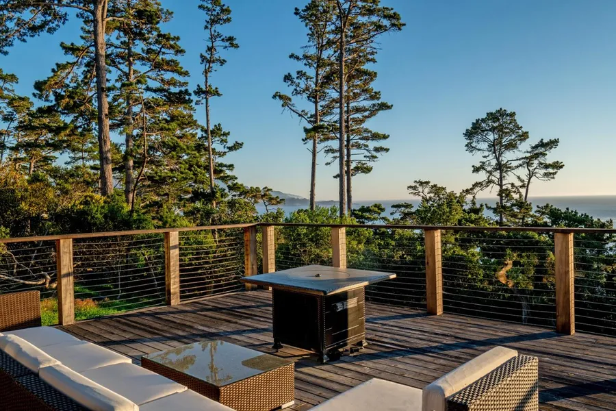 Located on the ocean side of Padre Lane near The Lodge and Pebble Beach Golf Course, this single-level Post-Adobe home sits on one of the finest view lots in Pebble Beach. An expansive southwest-facing deck showcases sweeping views of Point Lobos and the Pacific coastline extending to Big Sur. Upon entering, you are welcomed into a comfortable living room with vaulted ceilings and hardwood floors. The space opens to the dining area and kitchen, with sliding glass doors that lead to outdoor living areas. The spacious, sun-splashed, ocean-view lot is the star of the show, offering exceptional potential. The home features three bedrooms, four bathrooms, and 2,750 square feet of light-filled living space designed to enjoy the idyllic Monterey Peninsula climate.