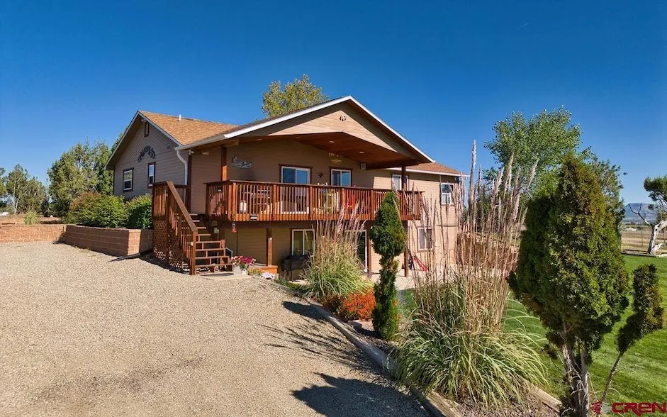 Nestled atop a scenic mesa with breathtaking panoramic views of Ute Mountain, Mesa Verde, La Plata Mountains and the surrounding valley, this remarkable property offers the perfect blend of luxury, functionality, and natural beauty. Set on 3 acres, a circle driveway welcomes you to this spacious home featuring 5 bedrooms and 3 bathrooms with ample space on both floors. The primary suite, open kitchen, dining and living room are conveniently all on main level. Along with two bedrooms and guest bathroom. The covered deck has an outdoor stereo, lighting and breathtaking views of the valley, Ute Mountain & spectacular Colorado sunsets. The walkout basement adds versatility with huge rec room, bedroom and a bathroom while a dedicated home gym and office/bedroom offer convenience for both fitness enthusiasts and professionals. Outside, the patio leads to the expansive grounds, fully equippe...