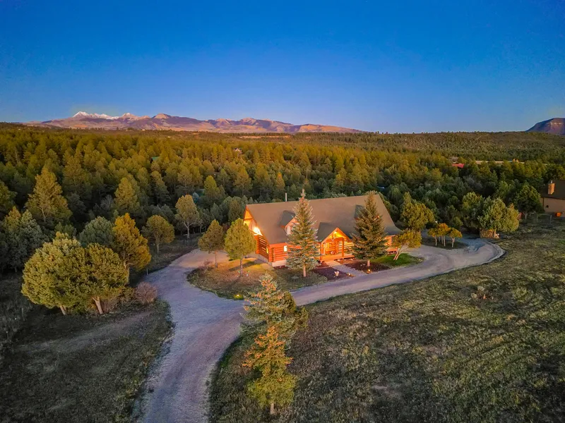 Log beauty in the coveted Oakview Subdivision in Mancos CO perched on a sun-filled ridge with 360-degree mountain views of the Menefee, Sleeping Ute, Mesa Verde, and La Plata ranges. This handcrafted Swedish-cope log home offers timeless mountain character and exceptional craftsmanship. Built in 2002 by Rasmussen Homes out of Alberta Canada and spanning 3,976 sq ft, the residence features 4 bedrooms plus a loft (which could serve as a bunk room or 5th bedroom) and 3 baths, metal-clad double-pane windows, and Trex decking taking in the views. The main level welcomes you with soaring cathedral ceilings in the great room and panoramic windows framing the La Platas. The kitchen blends rustic charm with modern function, showcasing granite countertops, red-oak flooring, a coffee bar, wine storage rack, bar sink, electric cooktop, and a Samsung stainless appliance package. A walk-in pantry and ...