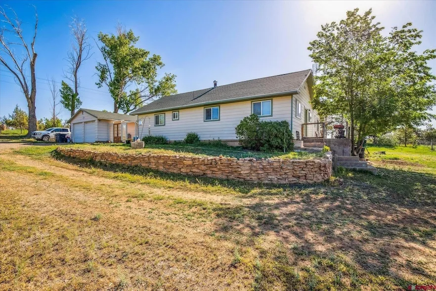 A Diamond in the Rough Historic Home with Irrigation, Views & Terraced Garden Potential Own a piece of Colorado history with this 1920-built ranch-style home nestled on 1.56 irrigated acres in scenic Dolores. This 4-bedroom, 2-bathroom property offers tremendous potential for restoration and customization, with solid bones, vintage charm, and modern updates including newer roof, windows, furnace, and fresh interior paint. Step outside to enjoy expansive views of the valley and surrounding mountains from the south-facing deck. There are abundant landscaping stones, ideal for creating terraced gardens, outdoor living spaces, or retaining walls. A small irrigation pond, mature perennials, fruit trees, and raised garden beds add to the appeal for anyone seeking a self-sustaining lifestyle. Additional features include a detached oversized 2-car garage/workshop, barn, and fenced pasture perfect for horses, livestock, or hobby farming. The spacious kitchen includes a layout that offers flexibility for renovation and personalization. Located just minutes from Dolores and a short drive to Cortez, McPhee Reservoir, and public lands, this property is a unique opportunity to restore a historic home and create your Colorado dream. No HOA or covenants.