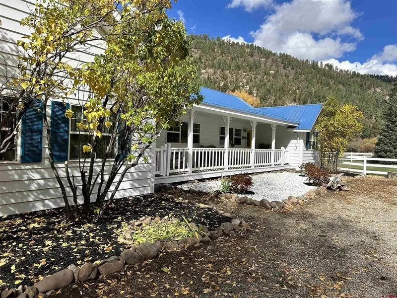 Paul Adams, Regents Real Estate Group Inc., C: 970-394-0688, , Where mountain serenity meets old-fashioned porch living. Tucked just off the Dolores River, this bright 3-bed, 2.5-bath home stretches out under a crisp blue metal roof and a sky that never quits. The long covered porch is heated and offers quiet and warmth from even the coldest winter day, while you drink your coffee like you’ve got nowhere else to be. Inside, the floor plan opens wide, with vintage late-90s bones. The kitchen flows into a generous living area, perfect for gatherings that run too long and stories that get taller as the night goes on. Outside, you’ve got not one but two garages, one attached, one detached, because someone finally understood that a workshop shouldn’t share space with holiday decorations and paint cans. The property’s flat, usable, and framed by white fencing that keeps the whole thing feeling tidy and timeless. Whether you’re after weekend serenity or year-round mountain life, this one’s equal parts comfort and character, no HOA, no nonsense, just the kind of place that feels like home before you’ve even parked the car.