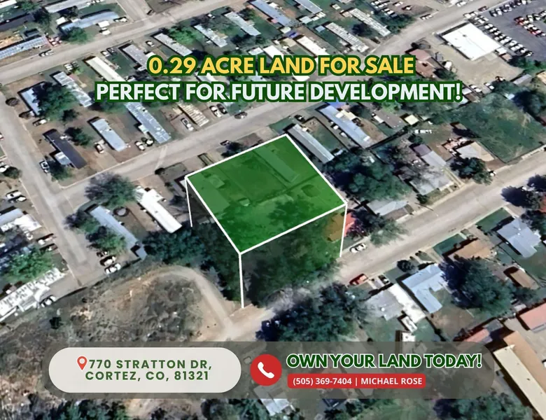 Research Parcel InformationTo visit the property at 770 Stratton Dr, Cortez, CO 81321, enter the GPS coordinates 37.34343, -108.599 into Google Maps. From downtown Cortez, head north on US-491, then turn right onto Stratton Dr. Follow the road to reach the lot, conveniently located along Stratton Drive for easy navigation.