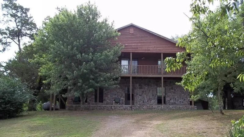 This beautifully built cabin has rock and log outside and mostly cedar on the inside. Several hundred feet of Caddo River on north side of property and a creek runs through the front yard. Just off Hwy 8. Master bedroom is huge. 3 bedrooms, 2 baths, workshop and a storm cellar, on 6.79 acres.