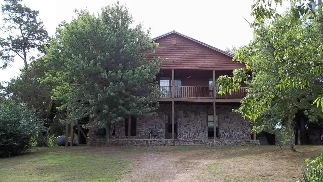 This beautifully built ranch style cabin, just off Hwy 8, has rock and log outside and mostly cedar inside. Several hundred feet of Caddo River on the north side of the property and a creek runs through the front yard. A huge master bedroom with 2 other bedrooms and 2 baths. It also has a workshop, storm cellar and detached garage on 6.79 acres.
