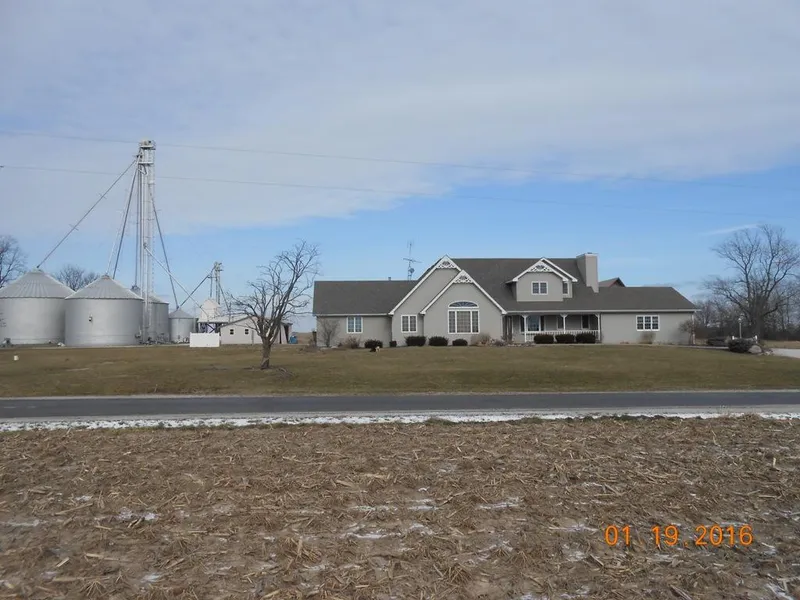 Beautiful 1 1 2/ story home has a partially finished basement, attached 2 car garage, above ground pool with a huge deck, outbuildings and more with 9+ acres of land. This home has 5 bedrooms, 3 full baths, 1-half bath, main floor utility room and another laundry area on the lower level, a huge living room with a fireplace, dining room with hardwood flooring, kitchen with plenty of cabinets, plus an awesome family/recreational room on the lower level, a finished storage room on the lower level, plus more! 5 grain bins, granary, barn, open flat machine shed & a hay barn.