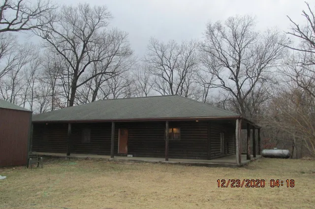 Country home nestled on 37 acres of virgin timber in the vicinity of the Village of Panama. Imitation log-sided home with wrap-around porch. Cedar interior emits the warmth and beauty of wood. 4 large bedrooms, 2 full baths, wood-burning fireplace, french doors, open kitchen/dining area/living room are features of this home. Cabinets aplenty, as well as countertop space, in oversized kitchen. Hallway of home has full-length shelving for additional storage space. Full, dry basement is drywalled with room partitions in place. Hi-efficiency furnace. Central air-conditioning(outside unit missing). Roof installed in 2003. Some TLC required. Originally, water supplied by well, but the source now is public water w/MJM electric. Outside furnace is non-functional. A 30' x 56' metal outbuilding with 3 overhead doors served as a garage and storage area. 12' x 12' wood storage shed and another 30' x 56' metal building. Property also has a large fishing pond. All-weather access road.